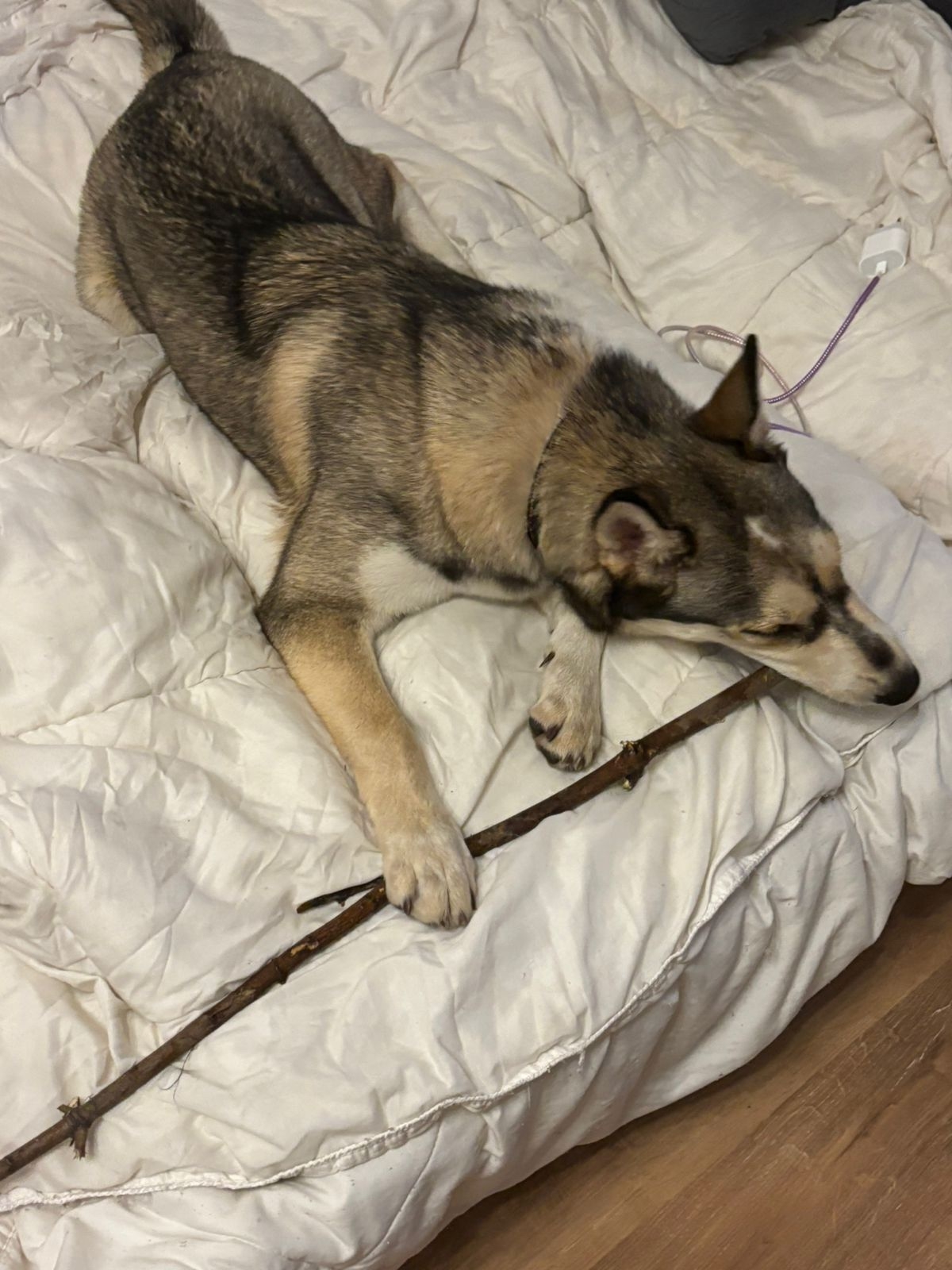 Помесь овчарки и хаски, подруга взяла к себе на передержку трех щенков, остался один! Своими силами не удалось найти дом. Думала оставить, но не справляется. Пес очень умный, игривый. С другими животными ладит хорошо, дома живет с котами.